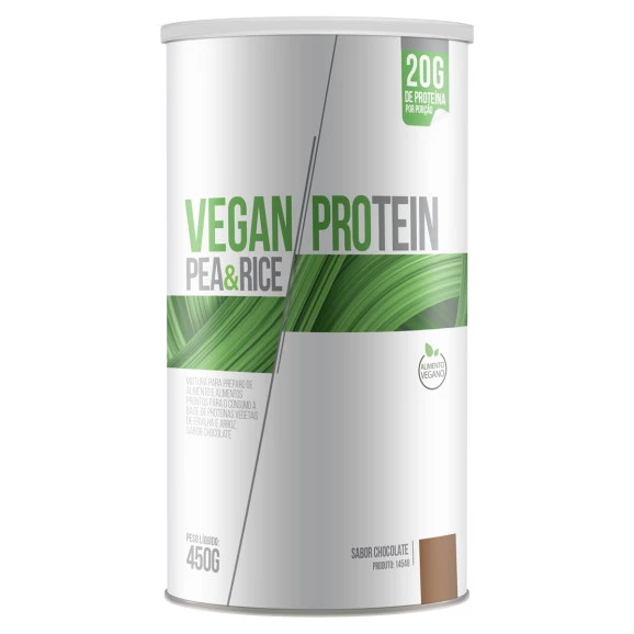 Pó para preparo de bebida à base de Proteínas Vegetais de Ervilha e Arroz, em embalagem de 450g. A VEGAN PROTEIN é composta por duas proteínas vegetais: proteína dos grãos de arroz e da ervilha. É um suplemento de fácil digestão, que fornece aporte de aminoácidos para veganos, atletas, praticantes de atividade física e para todos que procuram uma proteína de alta qualidade que possa ser utilizada todos os dias. Ideal para sua dieta e para a manutenção de seu estilo de vida. - 100% Vegano - Não contém glúten - Não contém adição de açúcares - Não contém corantes - Não contém aromatizantes - No GMO - Rende até 15 porções Modo de Preparo: Misture 2 scoops de VEGAN PROTEIN PEA&RICE em 200ml de água na coqueteleira ou no liquidificador, use gelo ou água gelada se preferir. Pode ser consumido com sucos, leite, frutas ou no preparo de outras receitas. Composição do Sabor Chocolate: Proteína de ervilha, proteína de arroz, cacau pó, alfarroba em pó, fibra de milho solúvel, triglicerídeo de cadeia média, bisglicinato de magnésio, glicosídeo de esteviol, vitamina B6 (piridoxal 5 fosfato), taumatina. Composição do Sabor Baunilha: Proteína de ervilha, proteína de arroz, fibra de milho solúvel, aroma idêntico ao natural de baunilha, triglicerídeo de cadeia média, bisglicinato de magnésio, espessante carboximetilcelulose, glicosídeo de esteviol, vitamina B6 (piridoxal 5 fosfato), taumatina. Produto dispensado de registro no MS conforme resolução RDC Nº 23 de 16/03/2000 e RDC nº 27 de 06/08/2010.